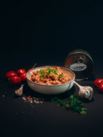 Sastāvdaļas: Rīsi, cūkgaļa, ūdens, burkāni, sīpoli, tomātu pasta, rapšu eļļa, garšvielu un garšaugu maisījumi (satur SINEPES, SELERIJU), vārāmā sāls